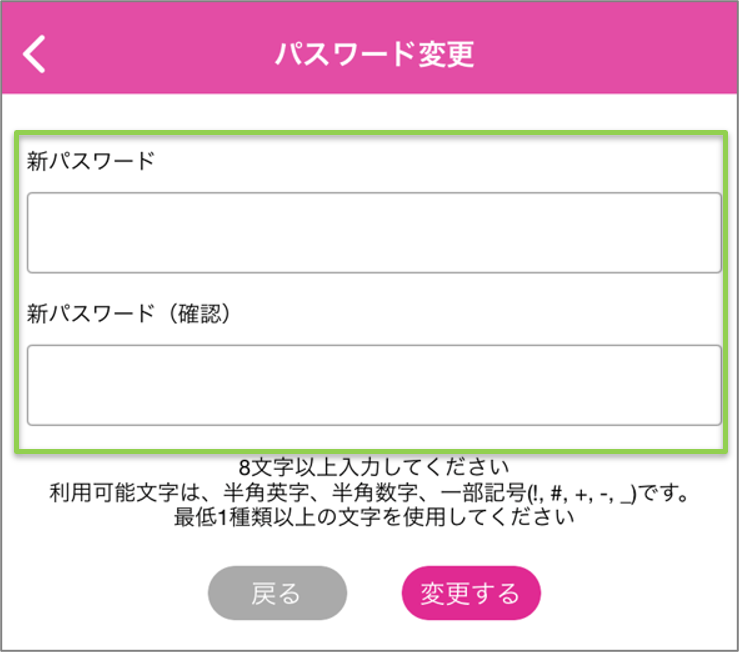 サイドメニューの【パスワード変更】から新しいパスワードを設定できます。