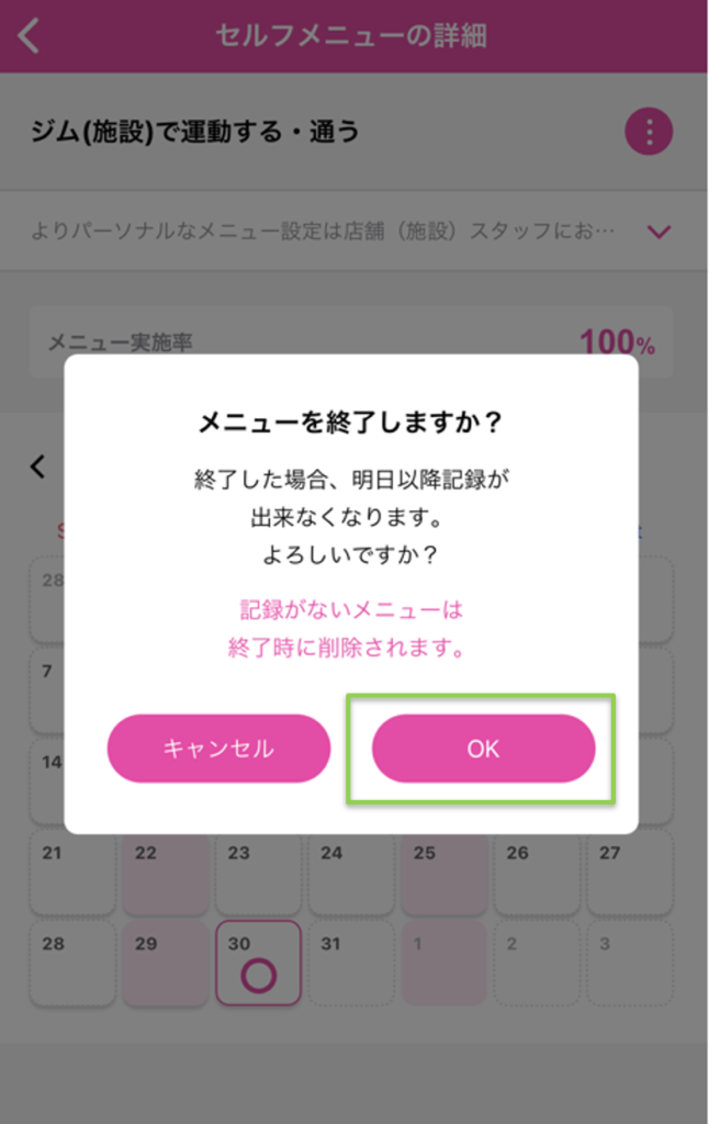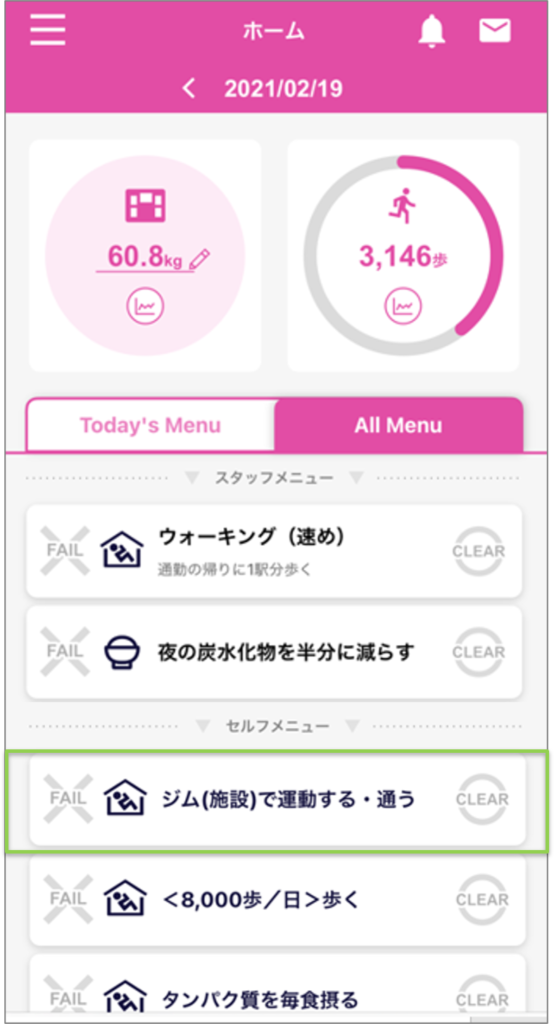 ※1度も実施記録をつけてない場合はメニューが削除されます。