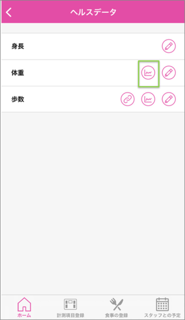 >>体重以外の計測項目のグラフの確認についての詳細はこちら<<