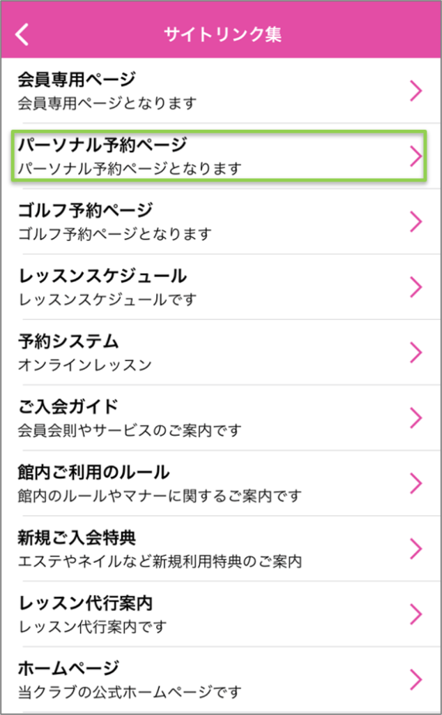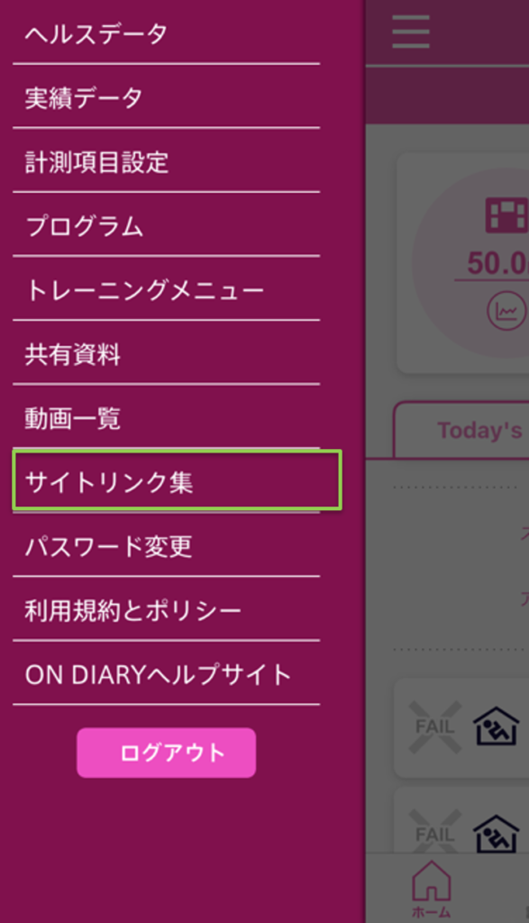 クラブが設定しているオンダイアリー以外の外部Webサイトの一覧が表示されます。
