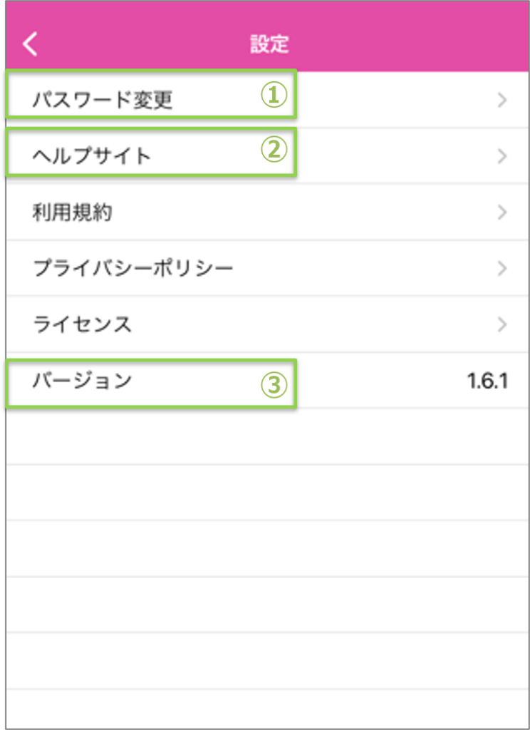 ①【パスワード変更】アプリにログインする際のパスワードを変更できます。