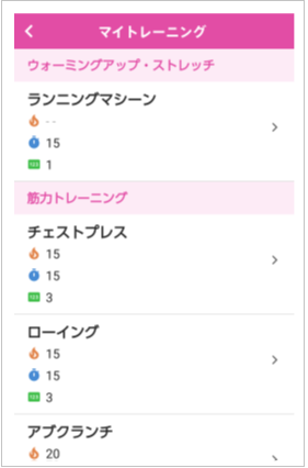 ※アプリからマイトレーニングメニューの項目を追加・変更することはできません。