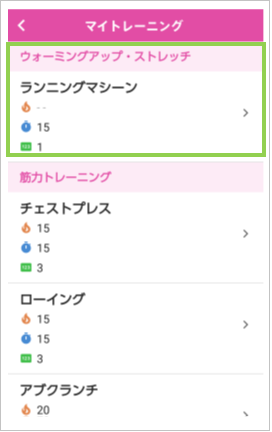 ※アプリからマイトレーニングの項目を追加・変更することはできません。