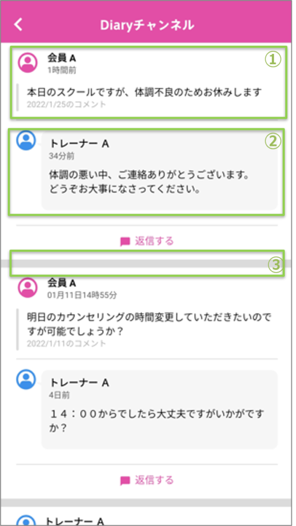 Diaryチャンネルを使って、スタッフからのコメントを確認できます。