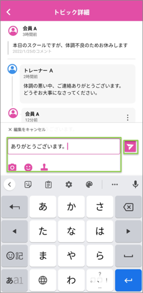 ※編集・削除できるのは、トピックス内で自分が一番最後に送ったコメントのみとなります。