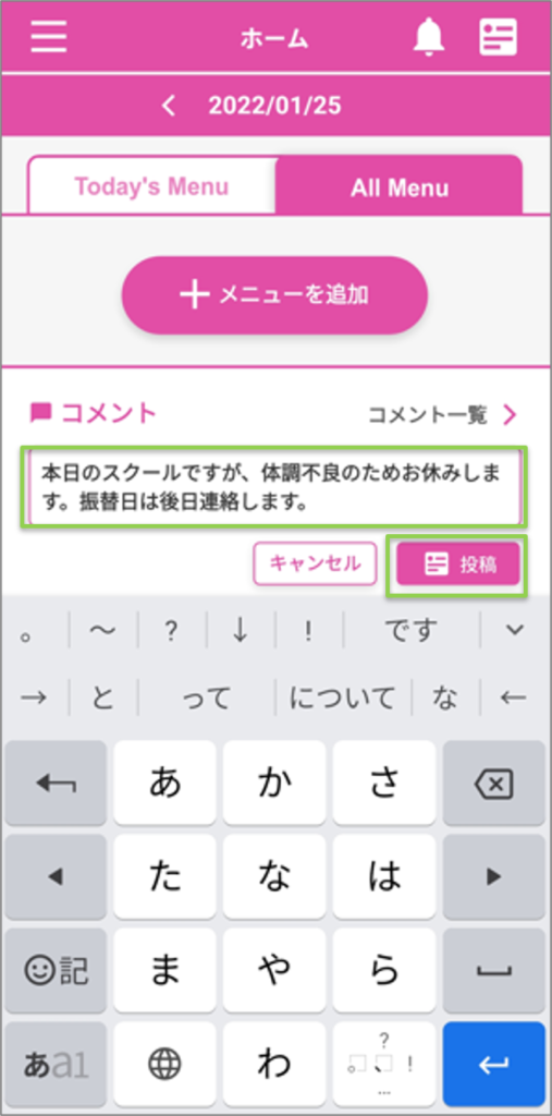 コメント・スタンプ・画像の追加や変更をして【投稿ボタン】を押す