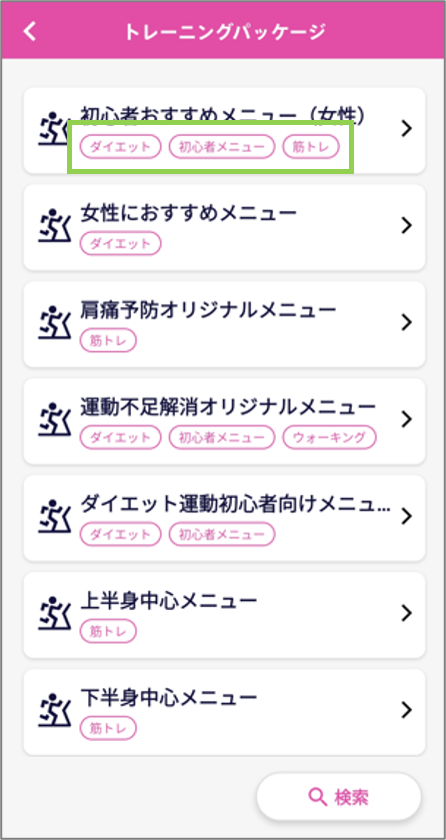 また、タグを指定して自分にあったトレーニングパッケージを検索できるようになります。